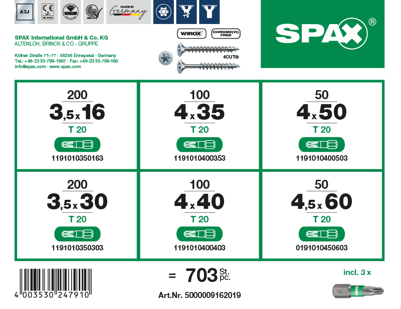 SPAX Skruvbox 703 delar inkl. bits – Komplett & organiserad