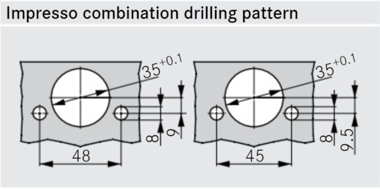 Gångjärnen passar borrbilder enligt bild, dvs. Grass Impresso och Blum Inserta.